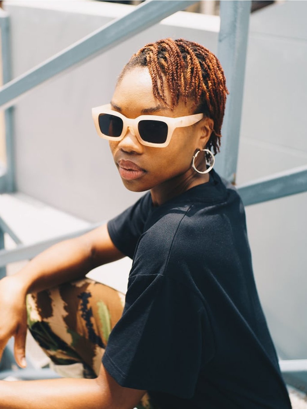 Anna. Mají šedé sklá v kombinaci s obroučkou z mléčného čaje, která je vyrobena ze 100% recyklovaného plastu.