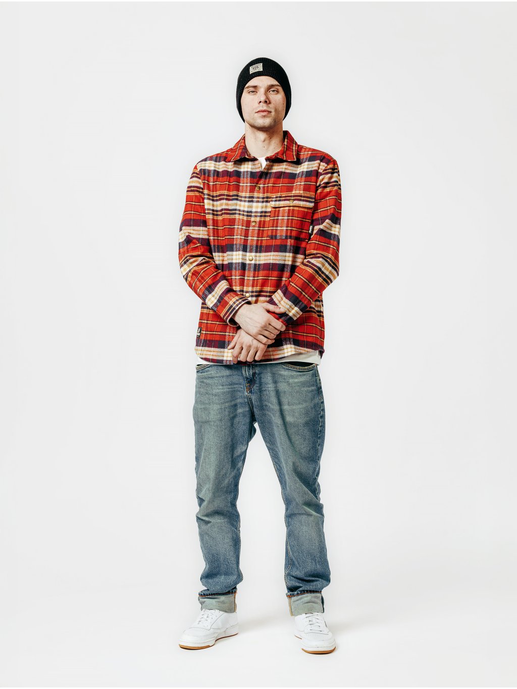 Red‑and‑black flannel shirt, CHUCK pattern, by Berlin’s The Dudes.