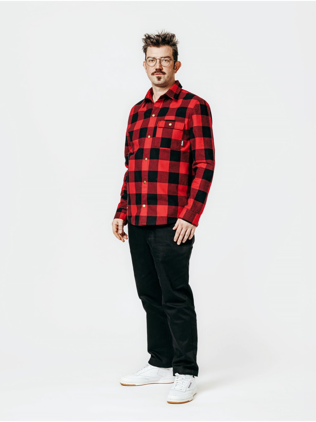 Red‑and‑black flannel shirt, CHUCK pattern, by Berlin’s The Dudes.