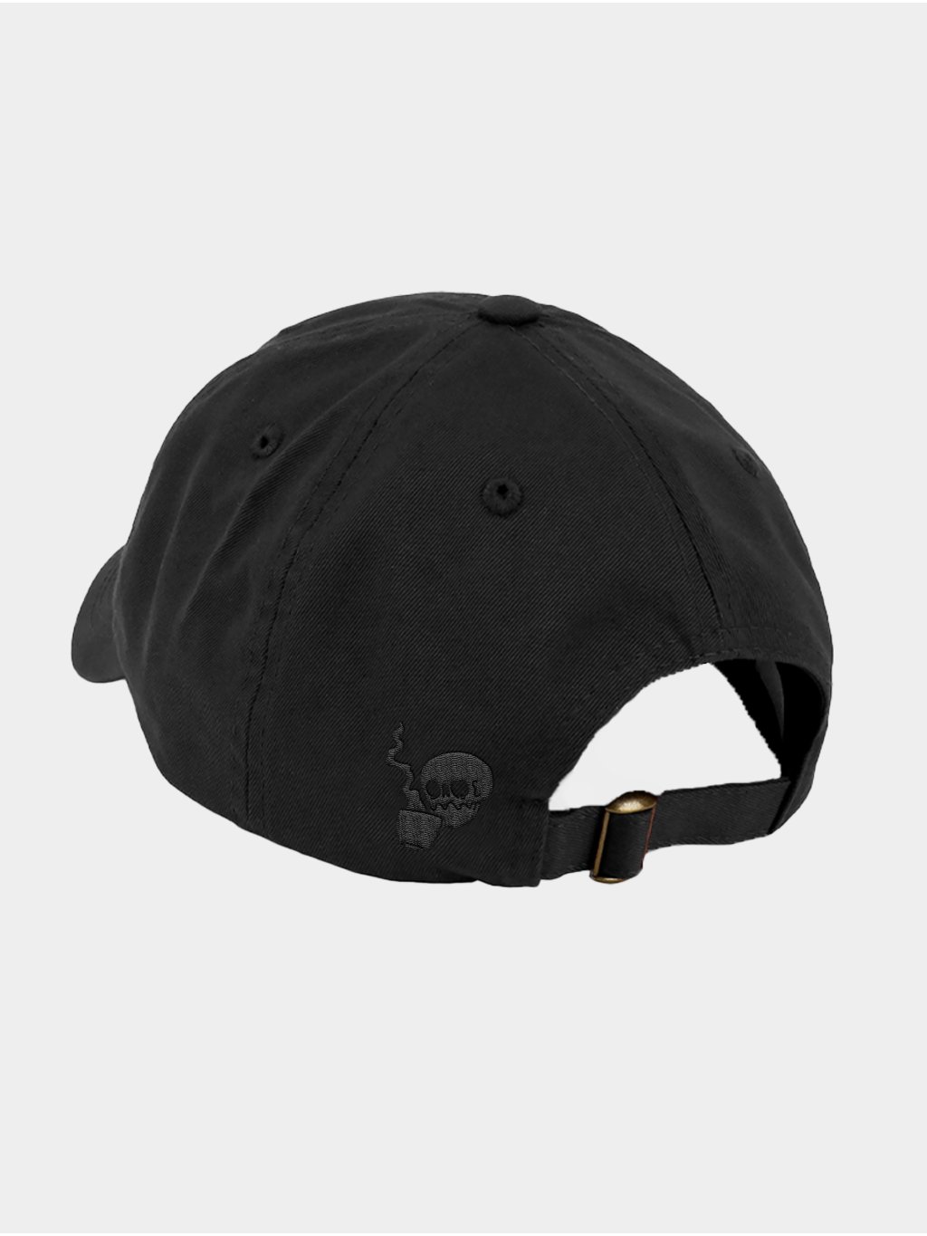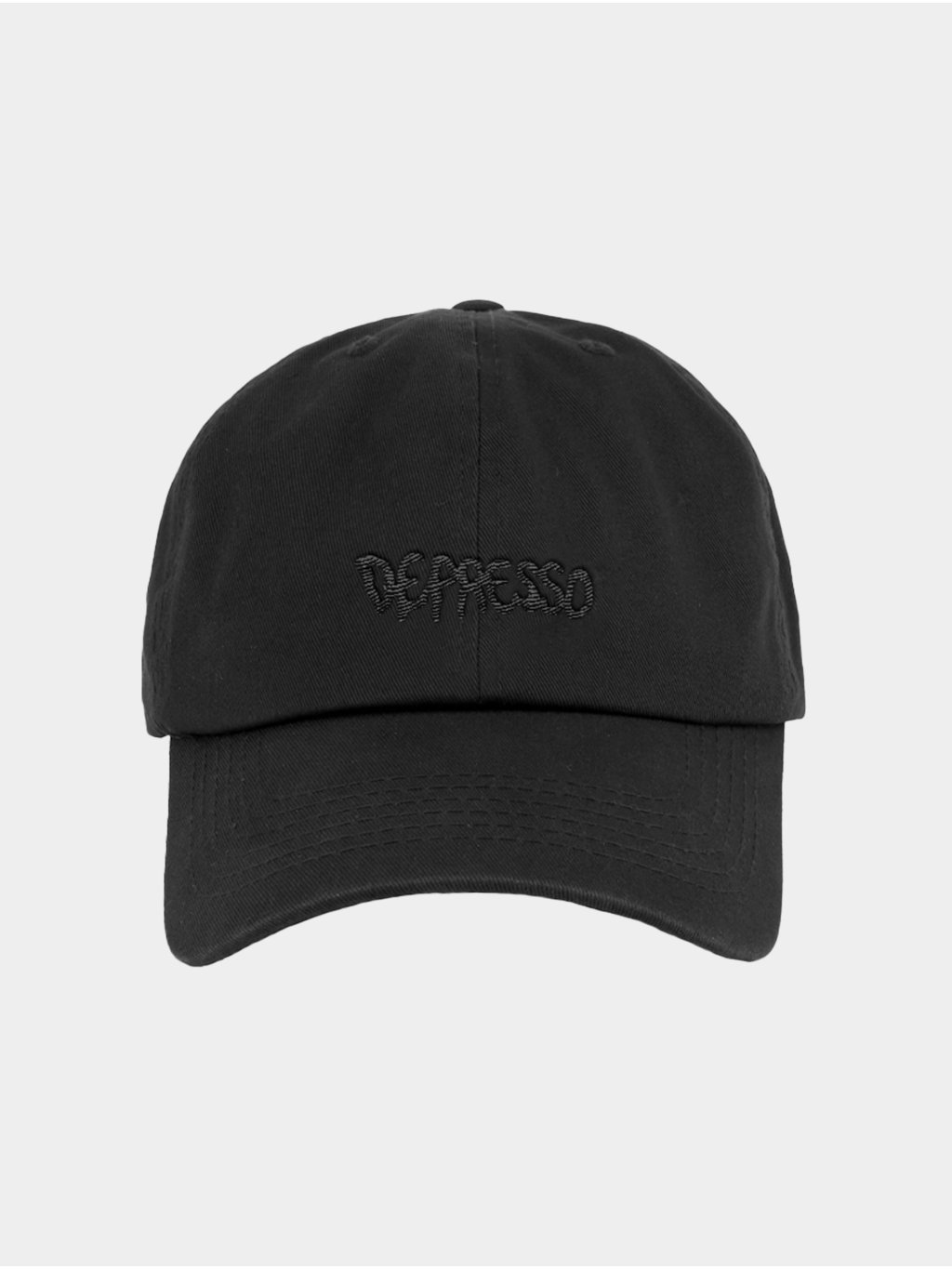 Black Dad Cap with the Depresso design by Kazisvět in a black-on-black embroidery finish.