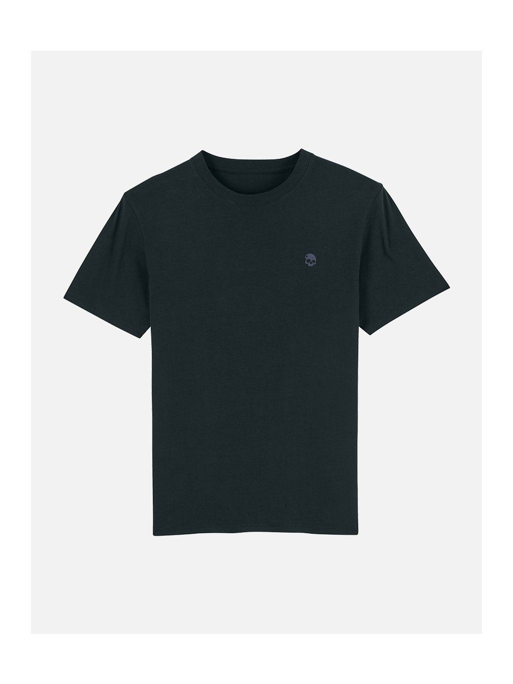Black T-shirt made of high quality organic cotton with small black embroidery. A basic t-shirt in our range, suitable for any event. For the pub, by the fire, for a business meeting or for Sunday lunch at your mum's.