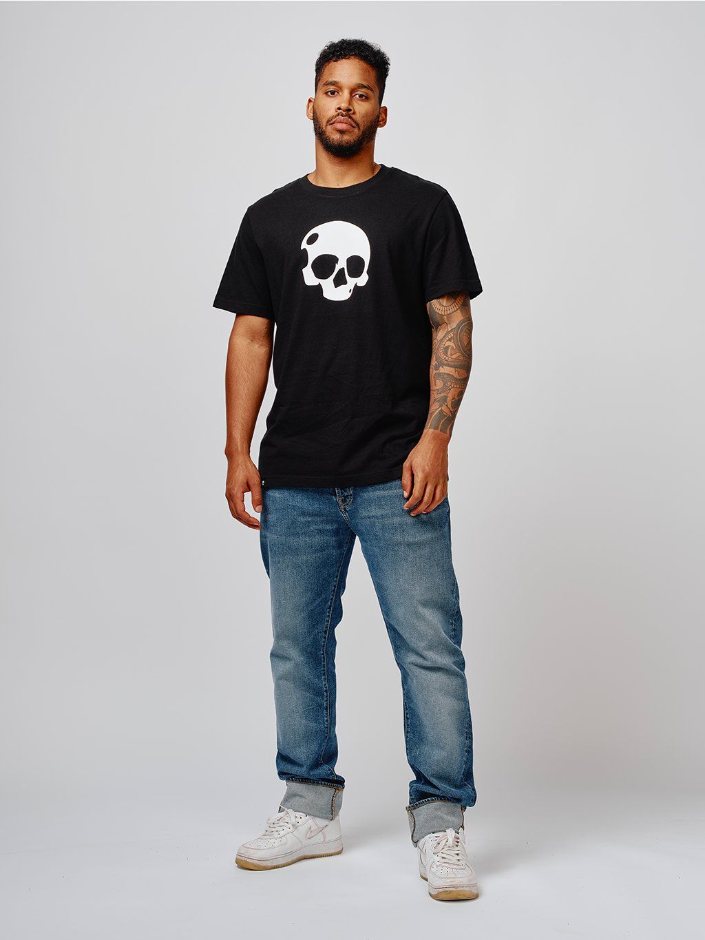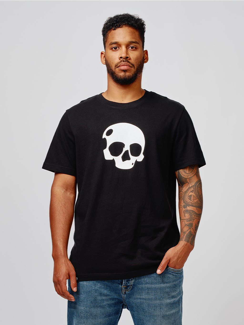 Black Never Enough T-shirt with a white skull - the icon of our company.