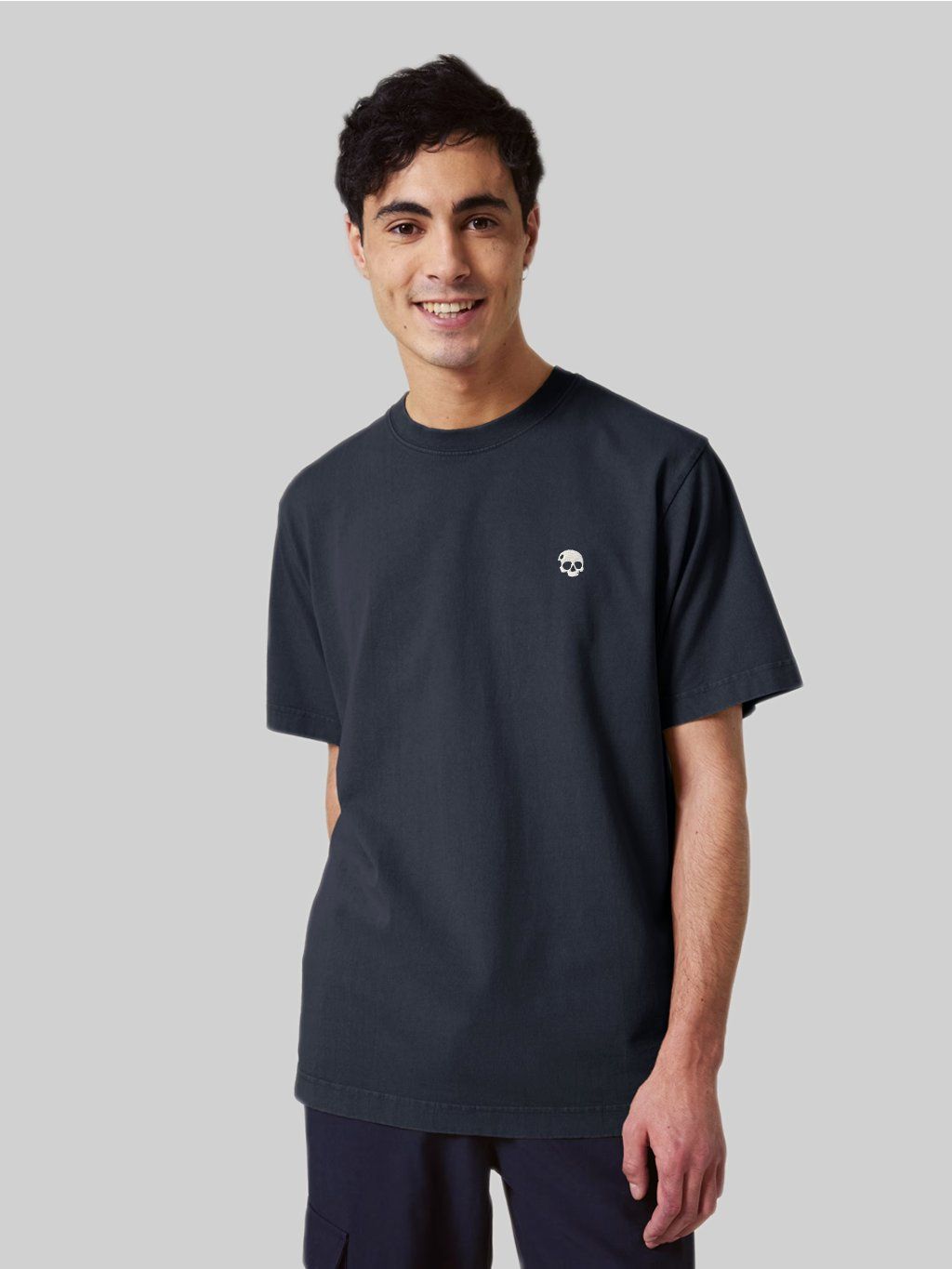 If you're bored with the selection of black t-shirts, we have news for connoisseurs. Relaxed fit - a slightly oversized, but still perfectly cut T-shirt made of high grammage cotton. Slightly extended sleeves that can be shortened at will thanks to the fixed hem with a stylish roll-up. Newly in a vintage black color giving it a washed out look.