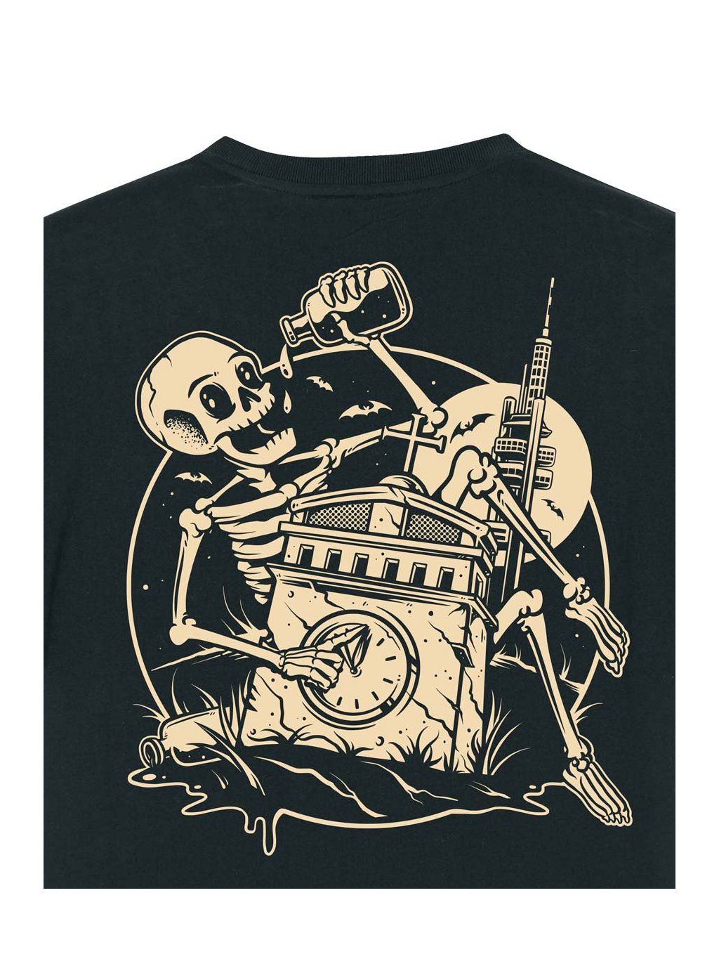 Black T-shirt made of high quality biobotton with Urban Takeover motif by Prague illustrator Vojtěch Woody Troják.