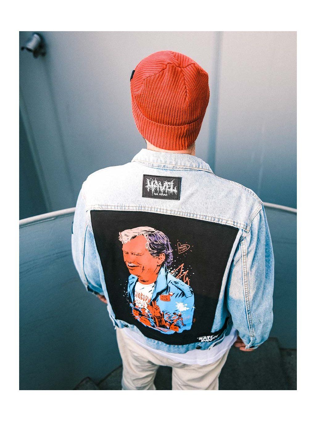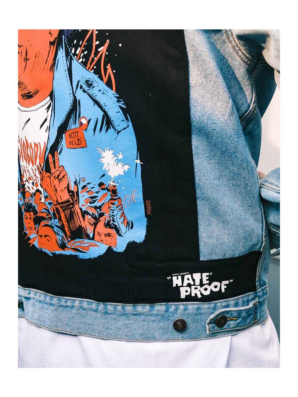 Limitovaná Custom Made Denim Jacket s hlavním motivem Nežít ve lži od Dany Lédl aka Myokard.