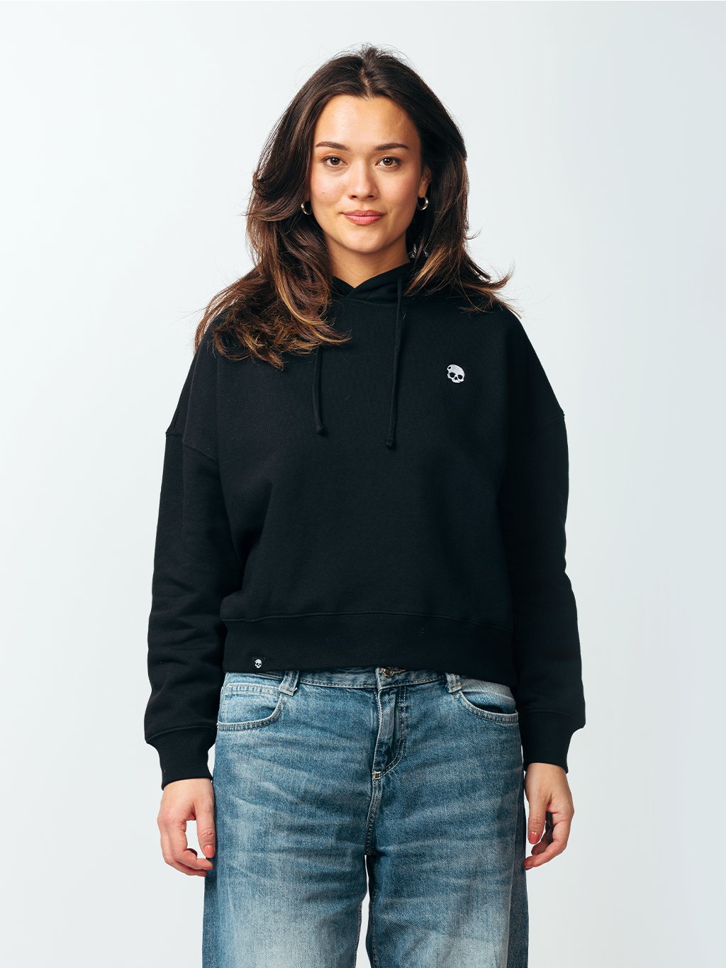 Širší střih, spadlá ramena a absence klokaní kapsy vytváří lichotivou, čistou a skutečně slušivou siluetu. Mikina je vyrobena ze 100% organické bavlny vyšší gramáže 300g/m² látka je uvnitř česaná pro mimořádně měkký a pohodlný pocit. Opatřený drobnou bílou výšivkou.