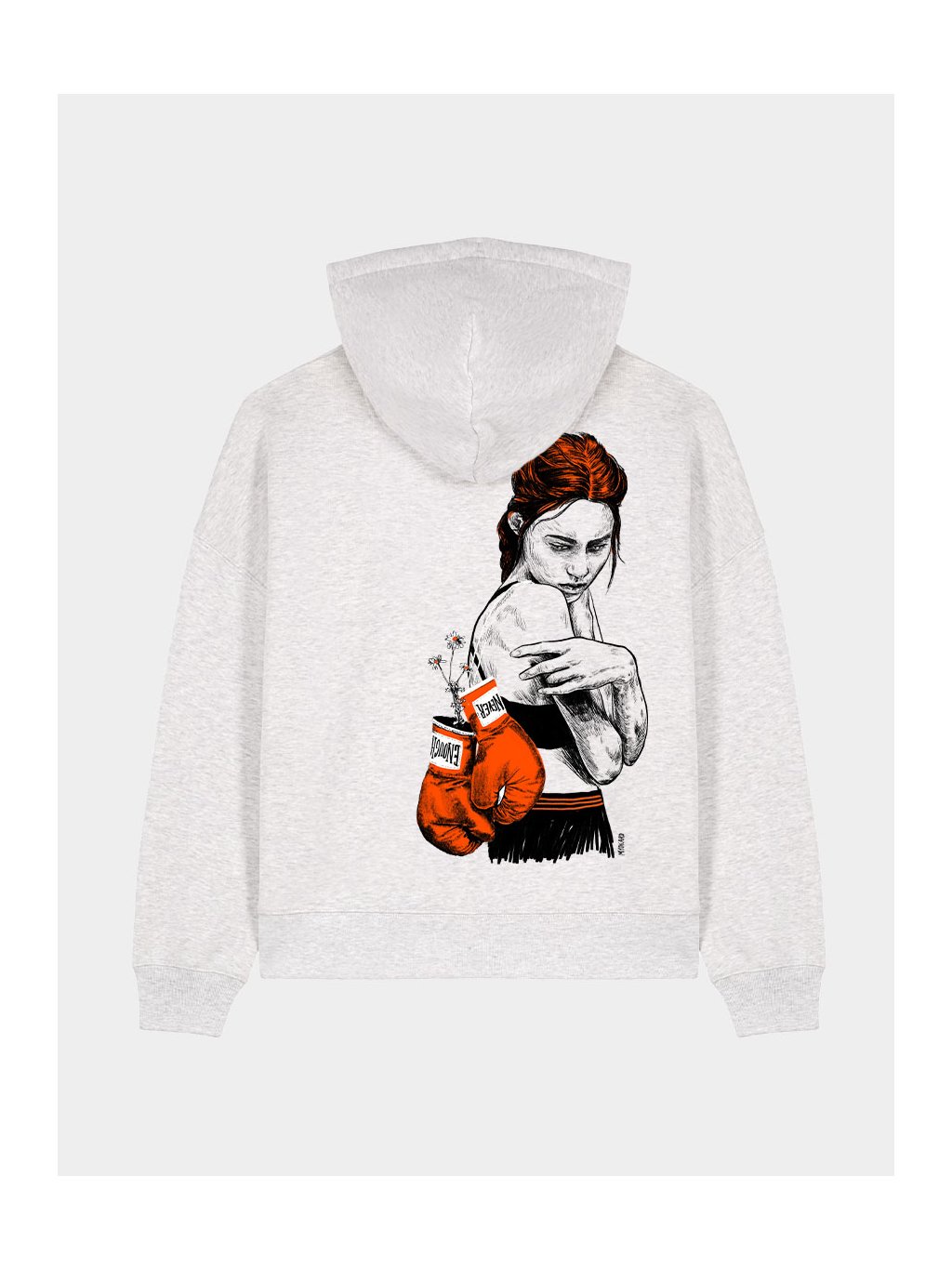 Ďábelsky slušivá světlé šedá prémiová dámská mikina s kapucí Fany. Náš bestseller.