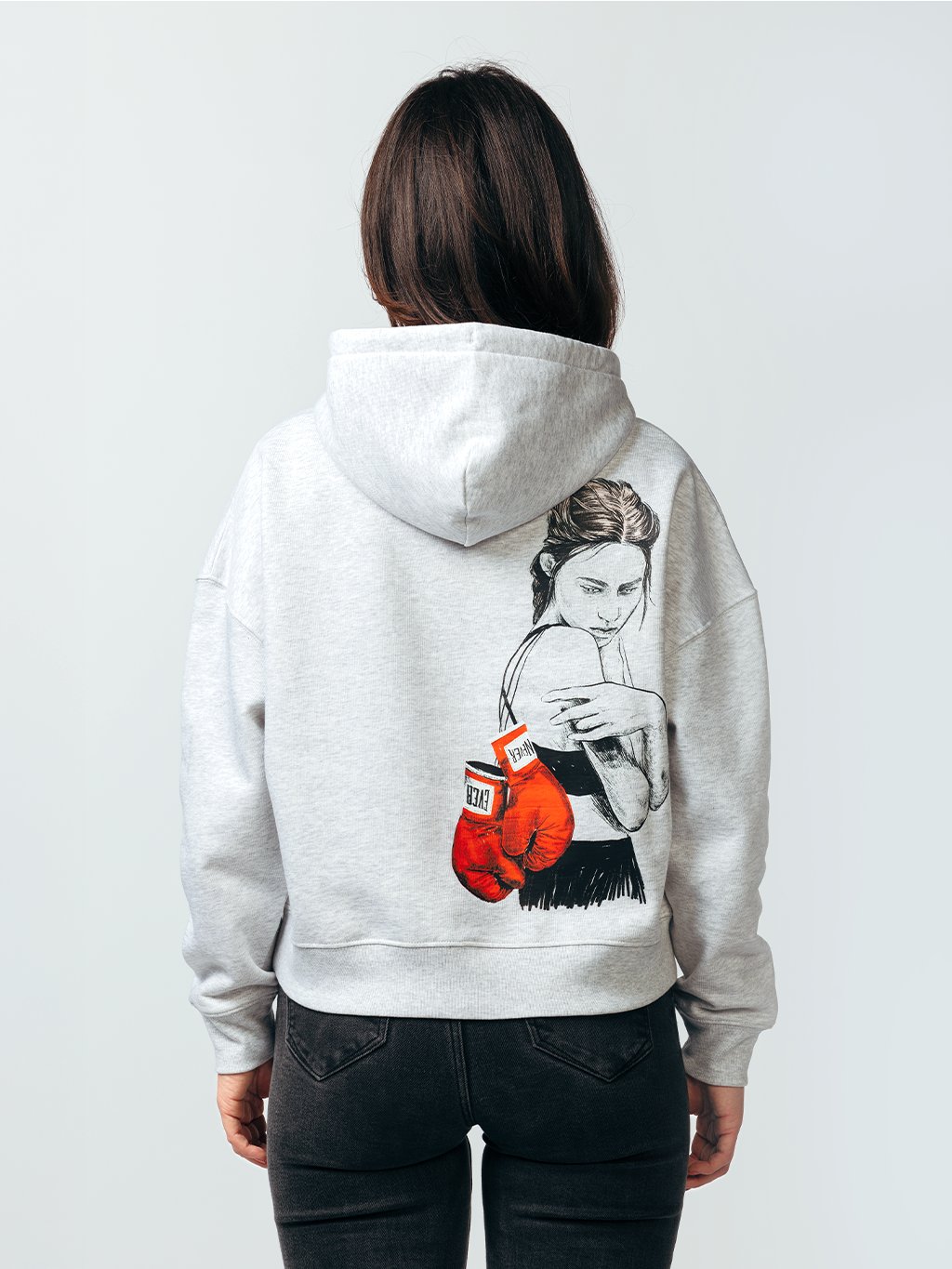 - dámská mikina s kapucí v novém, zkráceném střihu