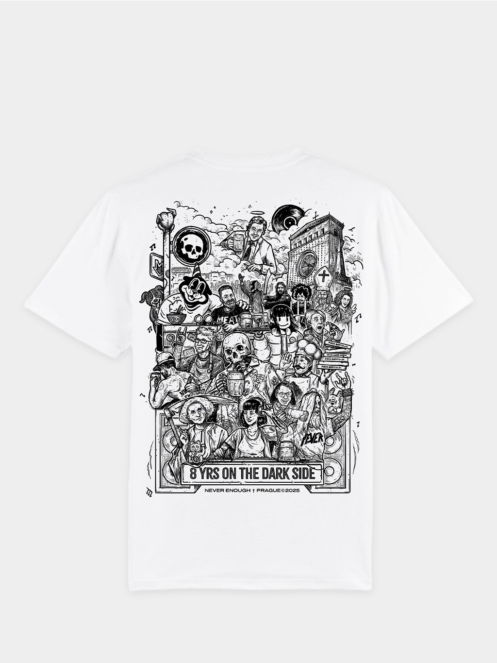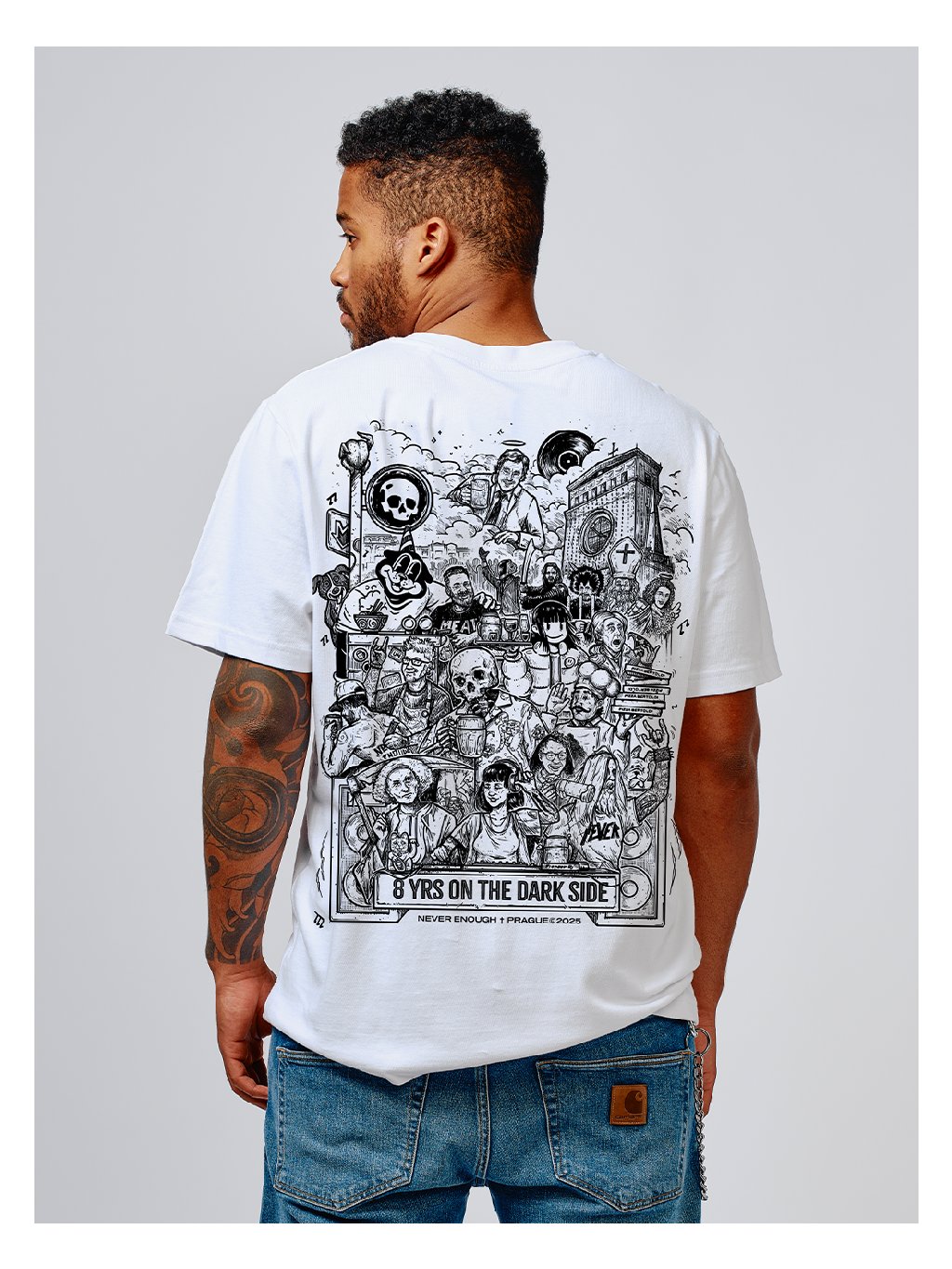 Limitované výroční bílé triko z vysoce kvalitní biobavlny s motivem 8 YRS ON THE DARK SIDE
