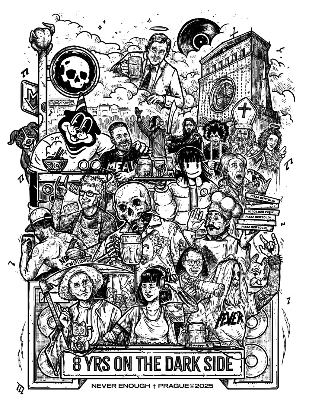 8 let potu a dřiny oslavíme ve středu 20. srpna před naší skromnou provozovnou na náměstí Jiřího z Poděbrad v Praze stověžaté. V rámci oslav jsme oslovili nadaného mladého ilustrátora Artioma Pitușcana, který nám vytvořil úžasnou ilustraci toho, jak to u nás v kostce vypadá, když všichni dorazíte - tedy krásně!
