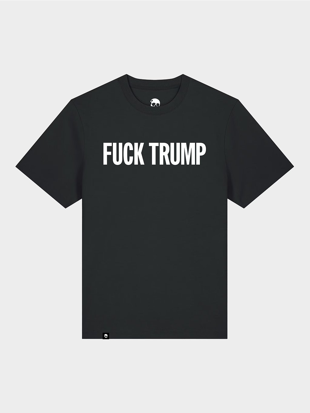 Klasické černé unisex tričko ze 100% organické bavlny s motivem Fuck Trump