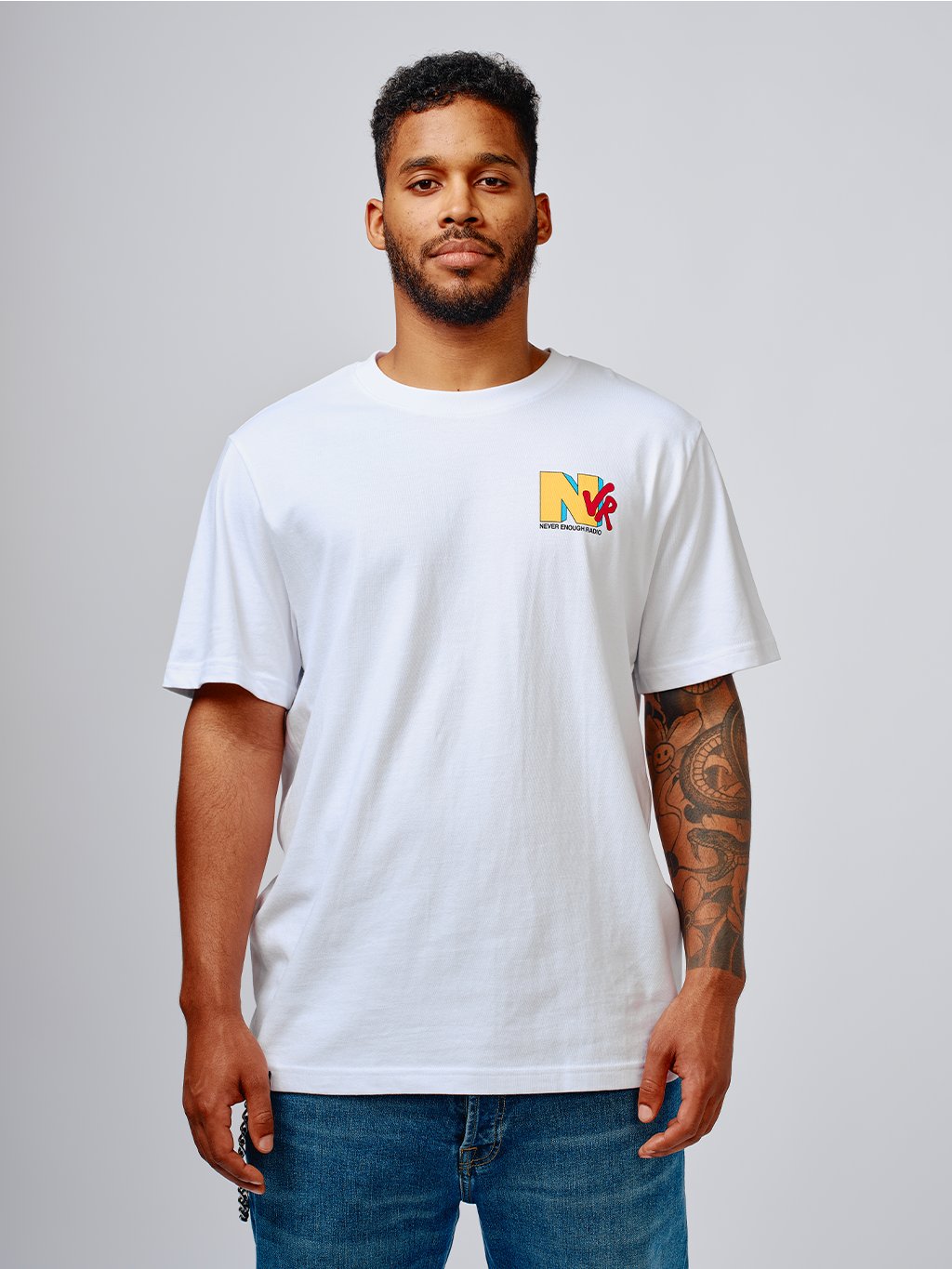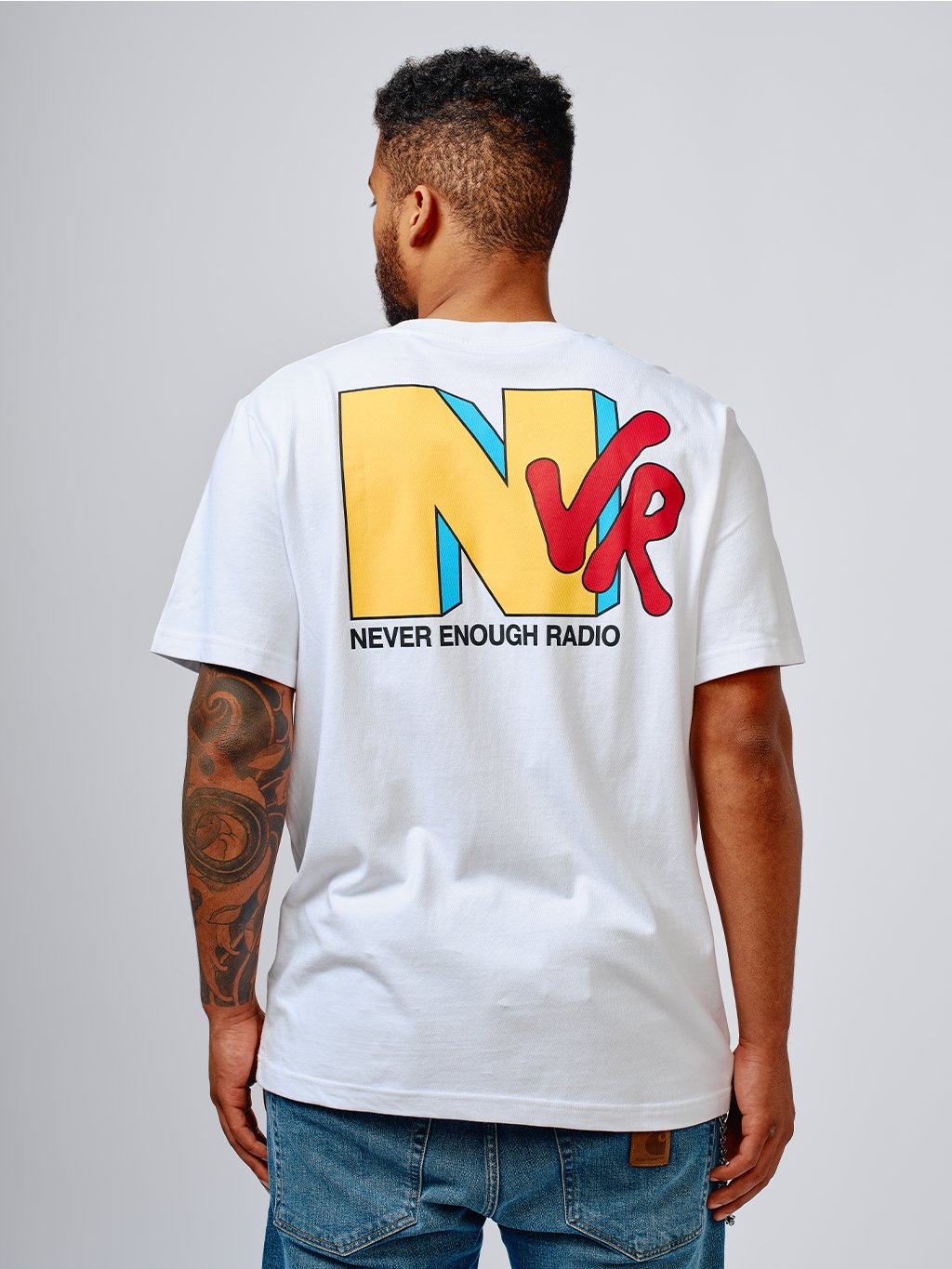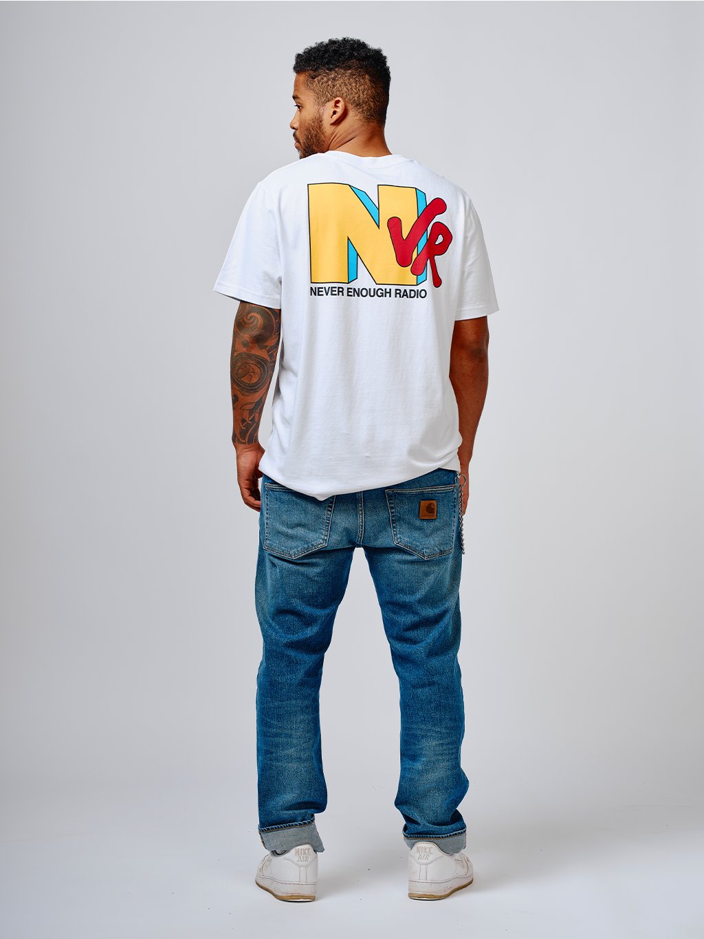 Bílé triko z vysoce kvalitní biobavlny s designem NVR Radio. NVR Radio je náš hudební pořad, který již šest let vysíláme na digitálních vlnách. Zachytit nás můžete na naší facebookové stránce, nebo na platformě Twitch.tv. Jedná se nepravidelně pravidelné DJské seance, které se odehrávají ve výloze našeho obchodu.