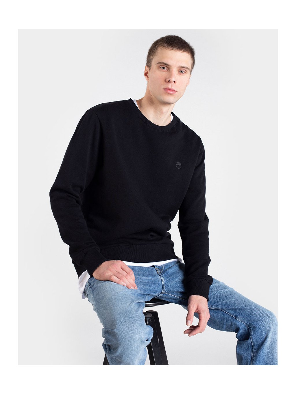 Černá unisex mikina bez kapuce (crewneck) vyrobená z revolučního, 100% recyklovatelného, cirkulárního materiálu NILCOTT® Recycled.