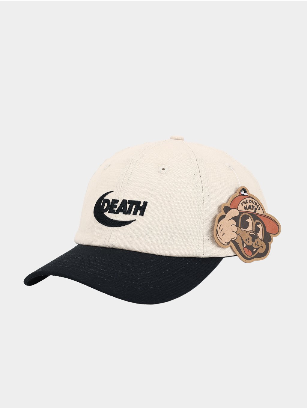 Černo-bílá dad-cap kšiltovka s motivem Death od berlínských The Dudes.