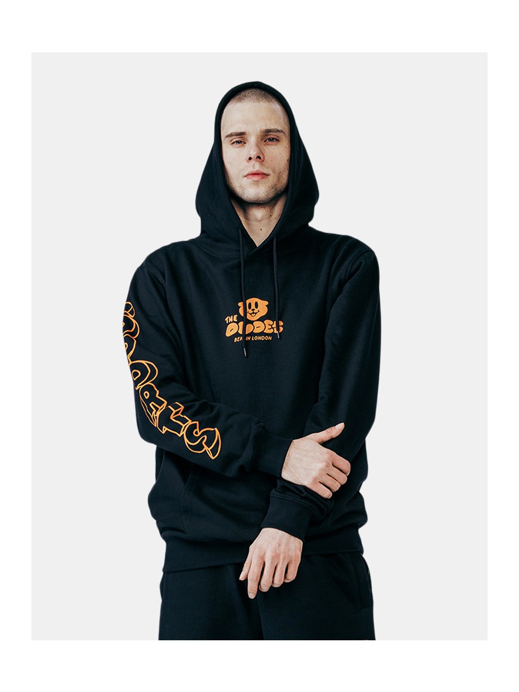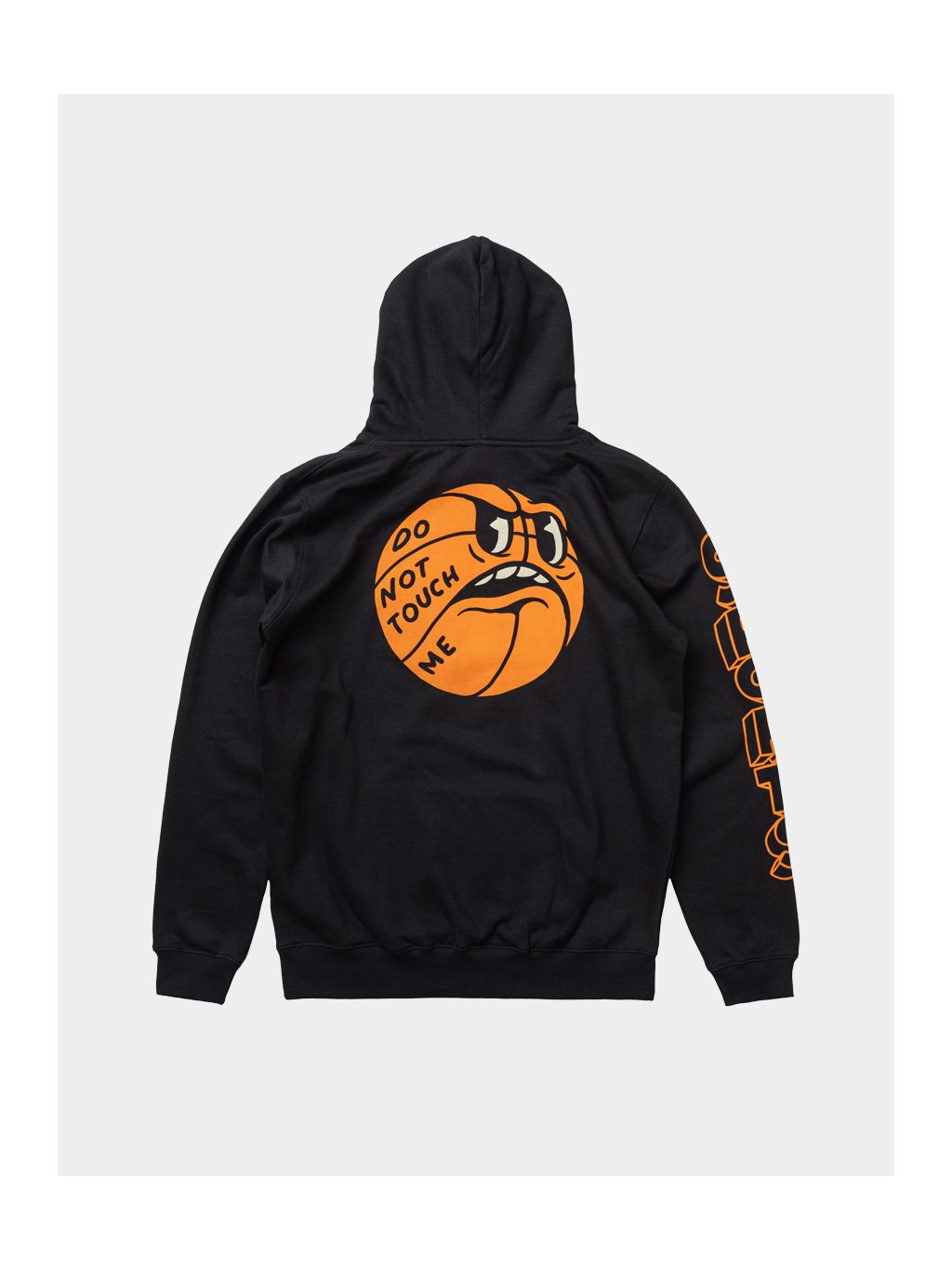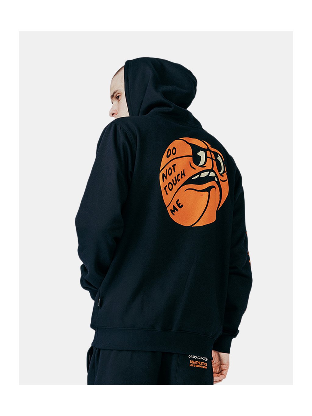 Černá mikina s Don't Touch Me designem.