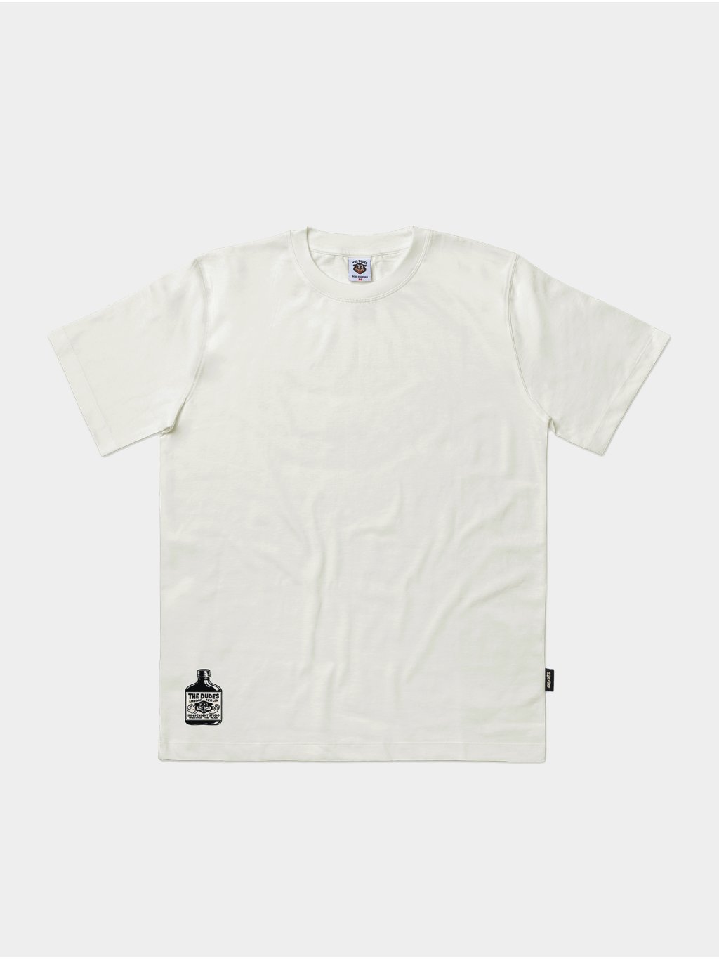 - Tkaná etiketa Dudes na krku a na boku.