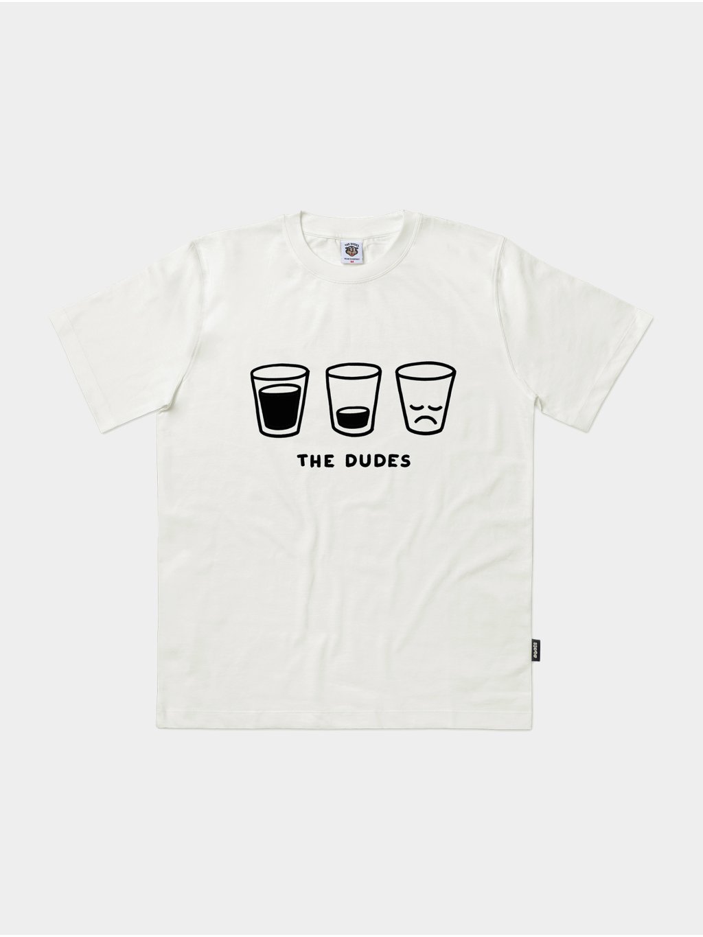 - Tkaná etiketa Dudes na krku a na boku.