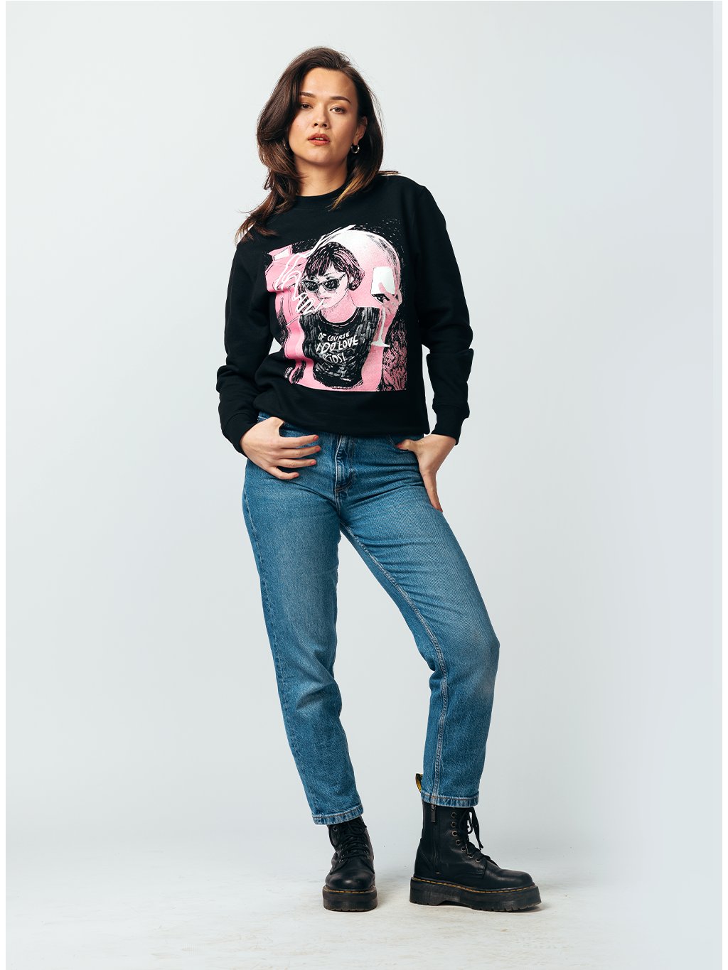 Černá mikina bez kapuce.
