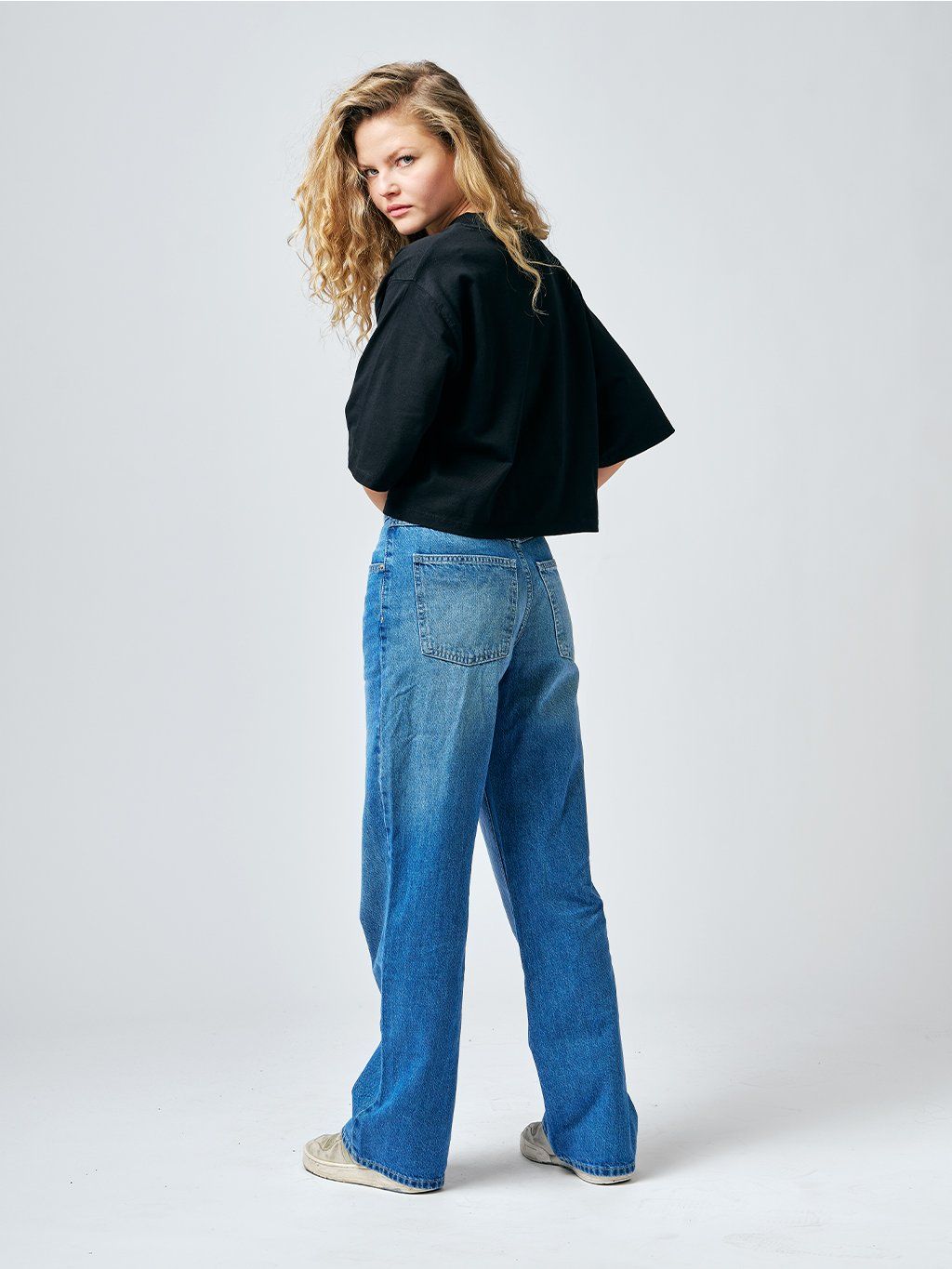 Super široké, hodně volné triko s volnými prodlouženými rukávy. Materiál z recyklované a organické bavlny má příjemný omak a drží tvar i po opakovaném praní.